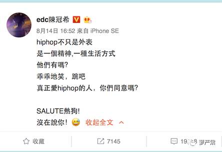 微博上讽刺《中国有嘻哈》徒有其表,是“乖乖地笑、跳吧。”