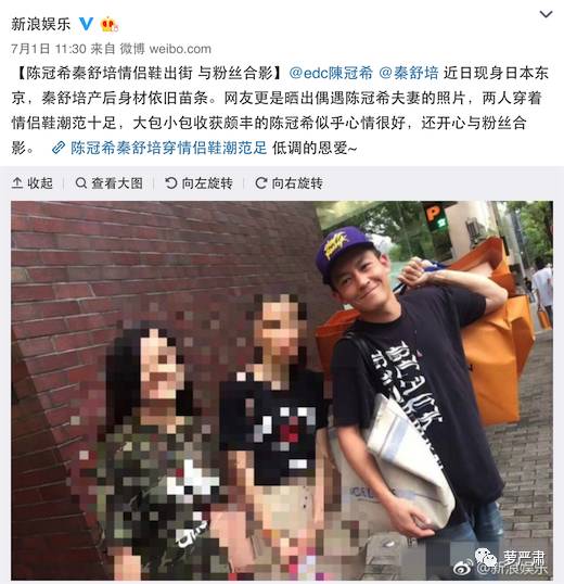 网上更流传着一张陈冠希和秦舒培抱着孩子的全家福大合影。