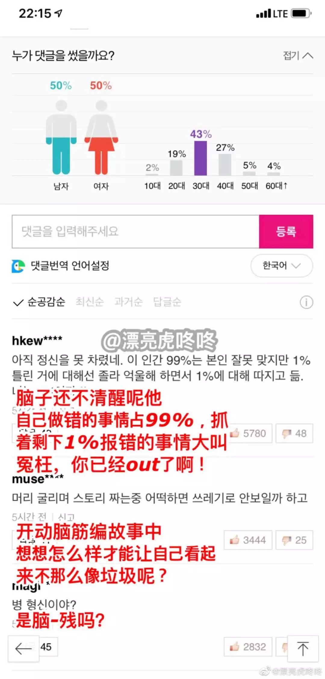 上节目的时候有事没事就CUE前队友,还怼人家最近RAP有进步之类的,简直是南韩小作精。