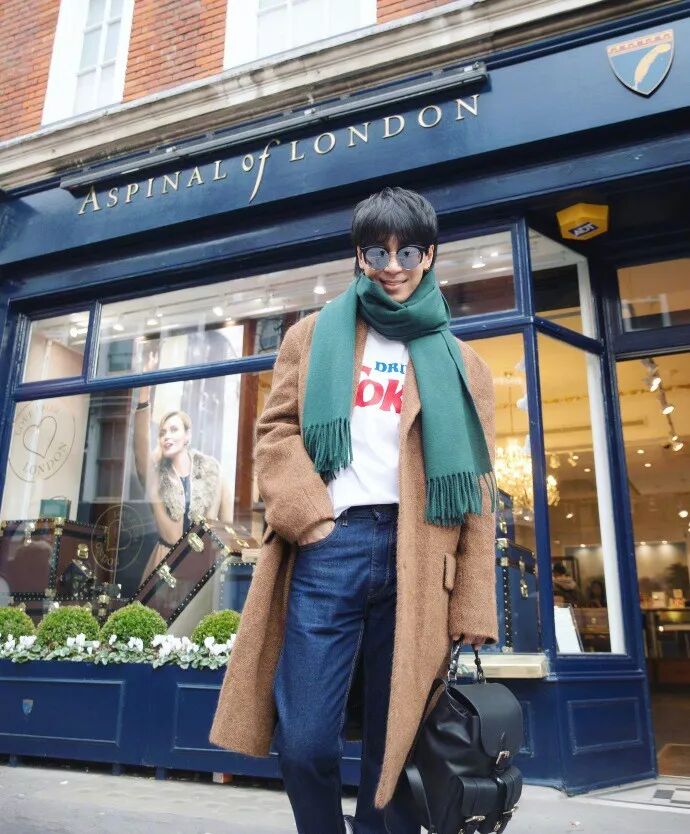 再看看韩火火最新的街拍照片,无论从搭配上,还是整体的气质上,有没有一种男闺蜜的既视感?墨绿色的围巾更是凸显了中性风的搭配。