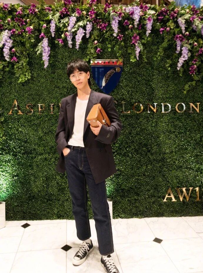 而即使穿上西装,摘掉墨镜,胸前的手拿包也依旧吸睛,女性手提包在韩火火手中也没有什么不对,似乎增加了一丝亲和力。