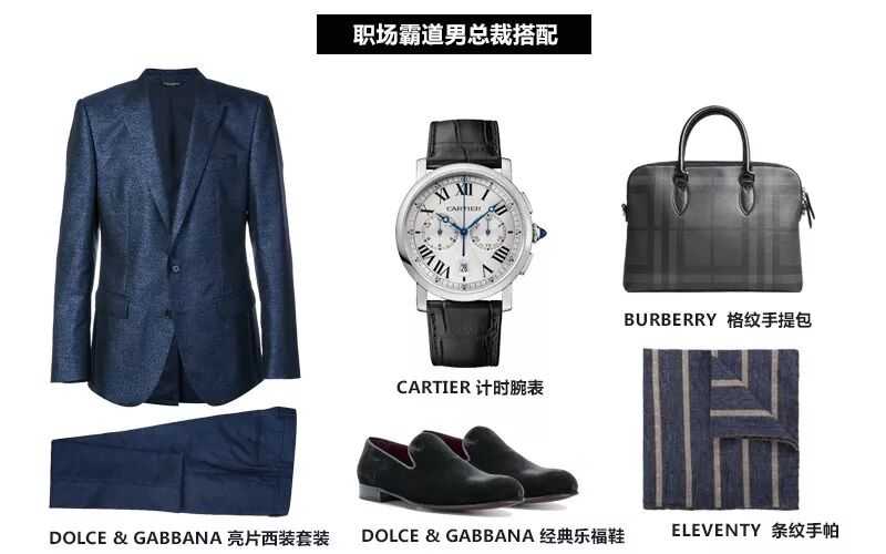 【包叔搭配建议】建议职场男性的搭配不要过于死板,亮片设计的西服套装,或是暗花设计的西服套装都是不错的选择,同时,常备一款手帕,在需要时绝对能够瞬间提升你的品位,还很环保~建议搭配一款皮带设计的腕表,一改往常钢带腕表的严谨性。