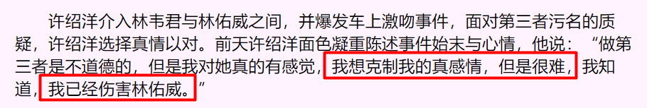 许绍洋不介意当“第三者” 坦承恋上师妹林韦君(图)