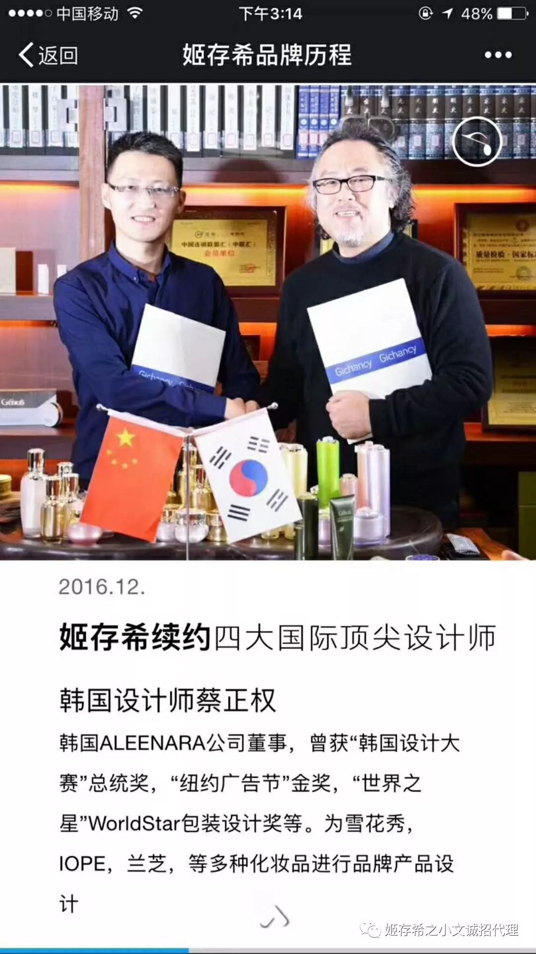 姬存希(Gichancy)我的轻奢私人护理专家,是浙江姬存希化妆品有限公司——百纳企业旗下潜心研制的主力品牌之一。 品牌理念坚持“自然的美的自然”,是高科技和自然的完美结合,包括基础护理、身体护理、洁面卸妆、面膜、彩妆和男士系列产品。