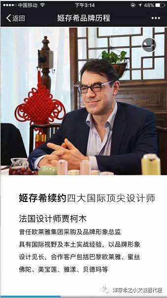 贾柯木,曾任欧莱雅集团采购及品牌形象总监,是姬存希四大设计师之一,具有国际视野及本土实战经验,合作客户包括巴黎欧莱雅、蜜丝佛陀、美宝莲、雅漾、贝德玛等。