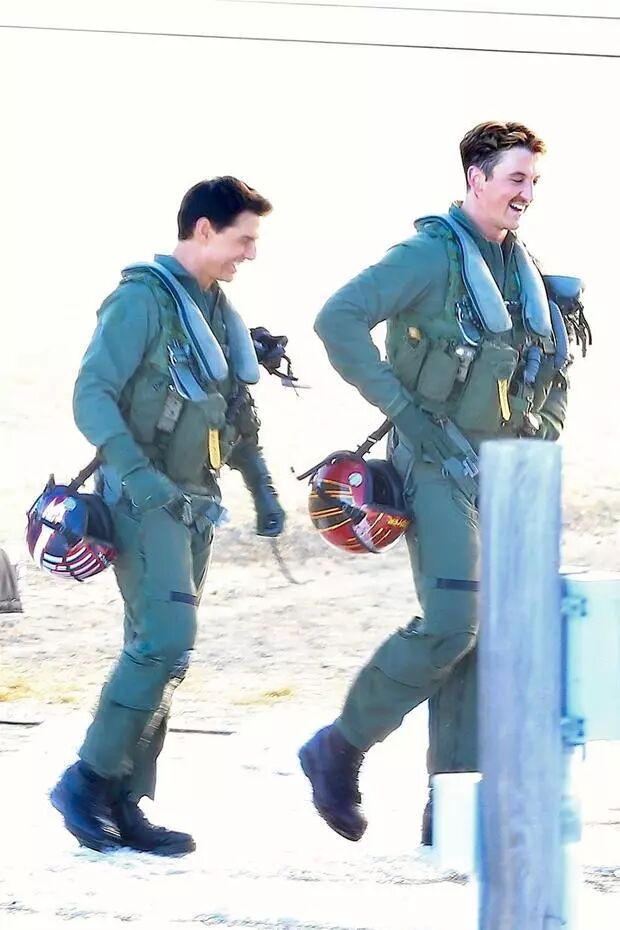 正在美国加州拍摄中的《壮志凌云2》曝光新片场照,56岁的汤姆·克鲁斯和31岁的迈尔斯·特勒现身。