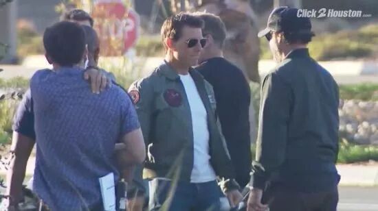 阿汤哥笑呵呵现身《壮志凌云2》片场