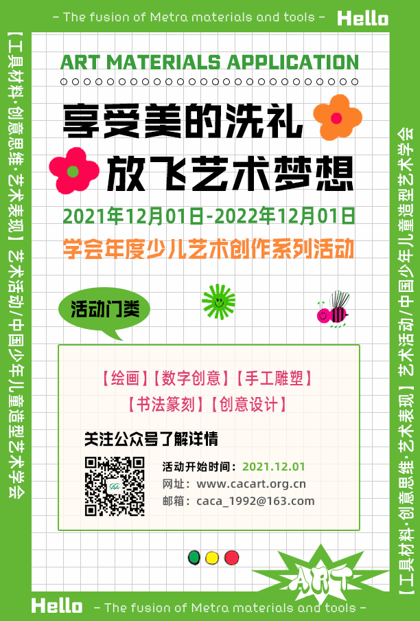 为促进广大少年儿童综合素质发展,遵循少年儿童的身心发展规律,实现美育的综合育人功能,从艺术情感与工具材料融合角度切入,引导少年儿童在艺术创作中发现美、体验美、感受美、创造美,结合新时代少儿美育发展需求,倡导孩子以个人或集体合作的方式参与美术活动,尝试运用各种各样的工具、材料进行创作,最大程度地发挥想象力与创造力,展现少儿的独特审美趣味和朝气蓬勃的精神面貌,中国少年儿童造型学会决定举办“学会年度少儿艺术创作系列活动”。