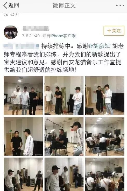 七月六号胡彦斌在西安看乐队排练并合了影,说明他这几天也一直都呆在西安。