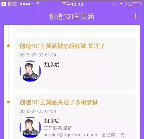 七月五号凌晨两人互关,这个时间很敏感,刚过完生日的凌晨,一方先关注另一方秒回关,不禁让人浮想联翩~