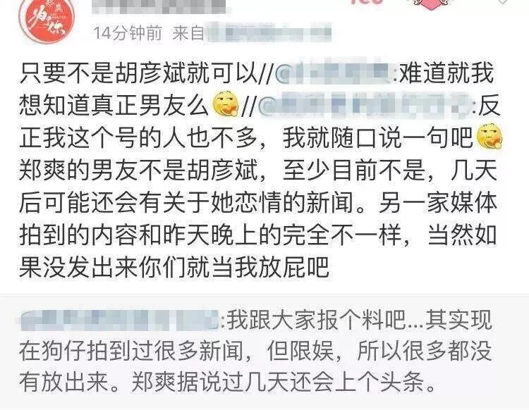 而昨天大家都在评论胡彦斌发的微博有点太绝情的时候,有粉丝跳出来说胡彦斌是被郑爽坑惨了,爽妹子的团队在捆绑他炒作。。。。