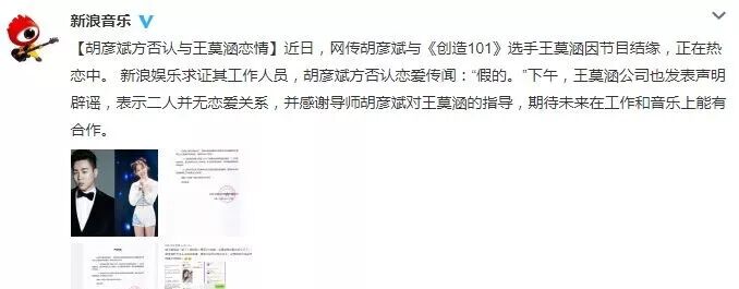 不过很快胡彦斌的工作人员就出来辟谣了,说他们并没有在一起。