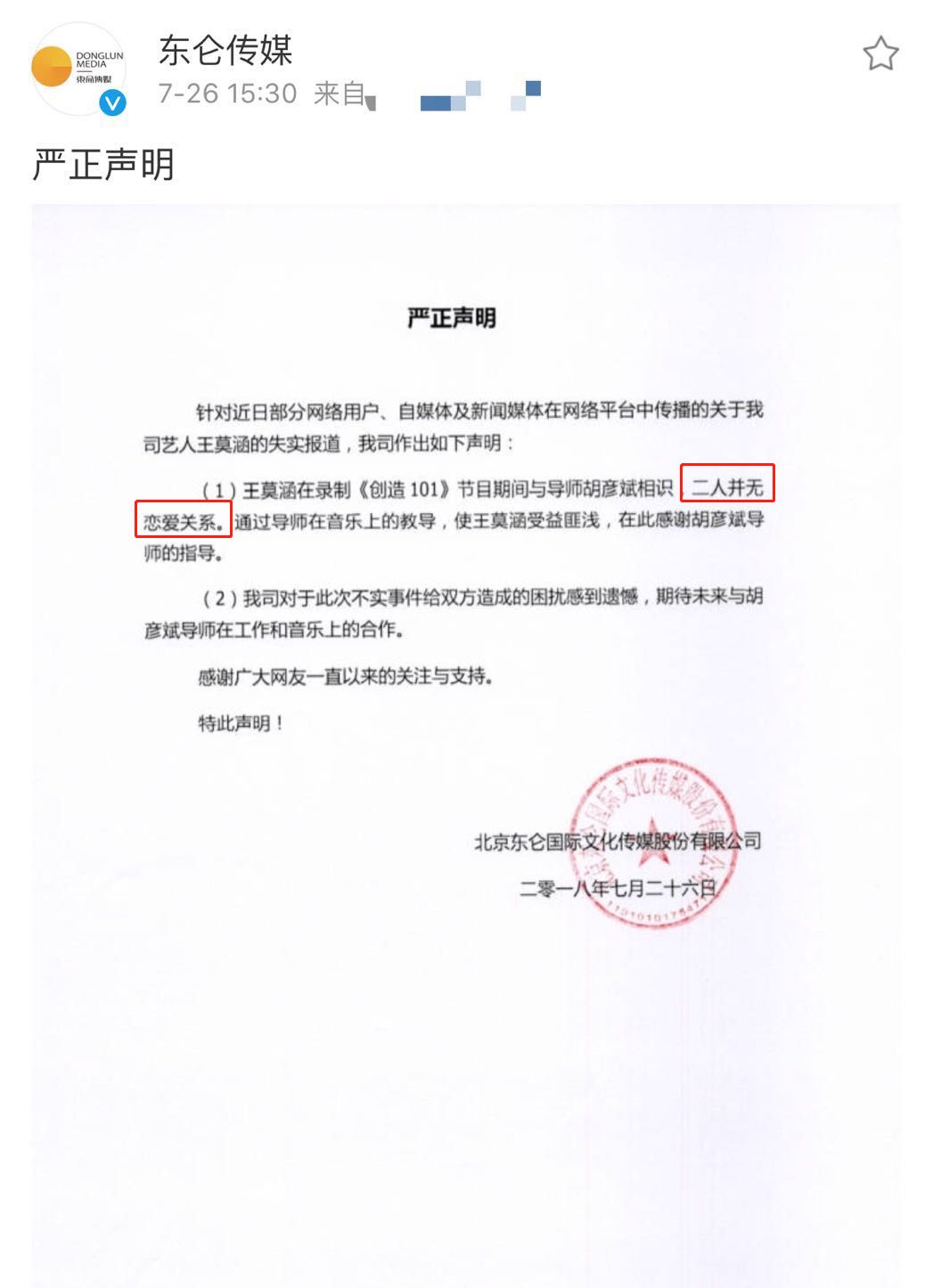 小姐姐的公司也发表了声明: