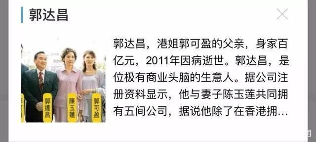 不过2011年郭可盈的父亲郭达昌去世,留下了巨额的资产和生意,估计郭可盈也不在乎自己的事业是否停滞了吧。