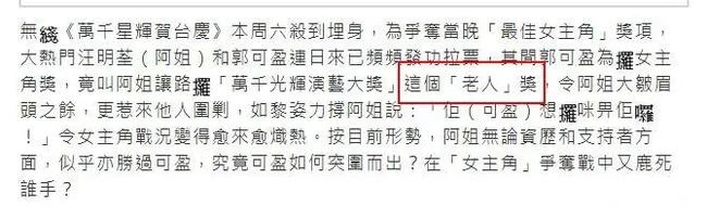 在2005年,郭可盈又一次错失视后以后,忍不住嘲讽获奖的汪明荃“老人奖”。