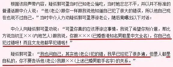 而且爆料中郭可盈也没有闲着,直接承认了自己跟一位已婚男歌手发生了感情,虽然录音中没有明确指出是谁,但是大家通过推测直指李克勤。