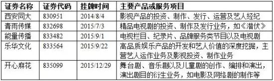 5家新三板影视公司披露了2015年业绩,这些企业营收均超过1亿元,在报告期内均实现盈利。明星扎堆新三板现象也很好的说明了新三板具备重要的投资价值。