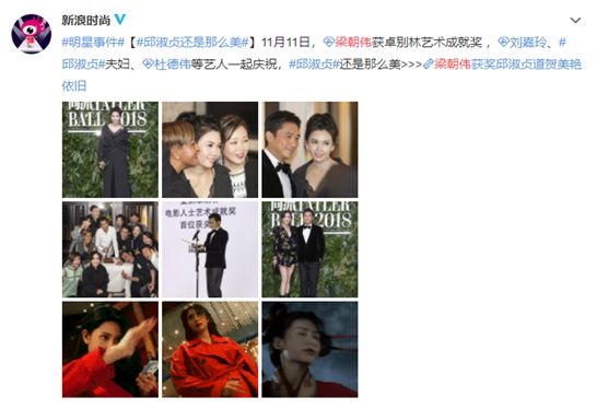 近日,梁朝伟喜提“卓别林电影人士艺术成就奖”,成为了首位得此奖项的亚洲电影人。刘嘉玲为了给老公送上意外惊喜,邀请了不少圈中好友到现场,邱淑贞的亮相上了热搜。女神还是依旧美艳动人,引发人们集体赞叹她仿佛吃了防腐剂的美。