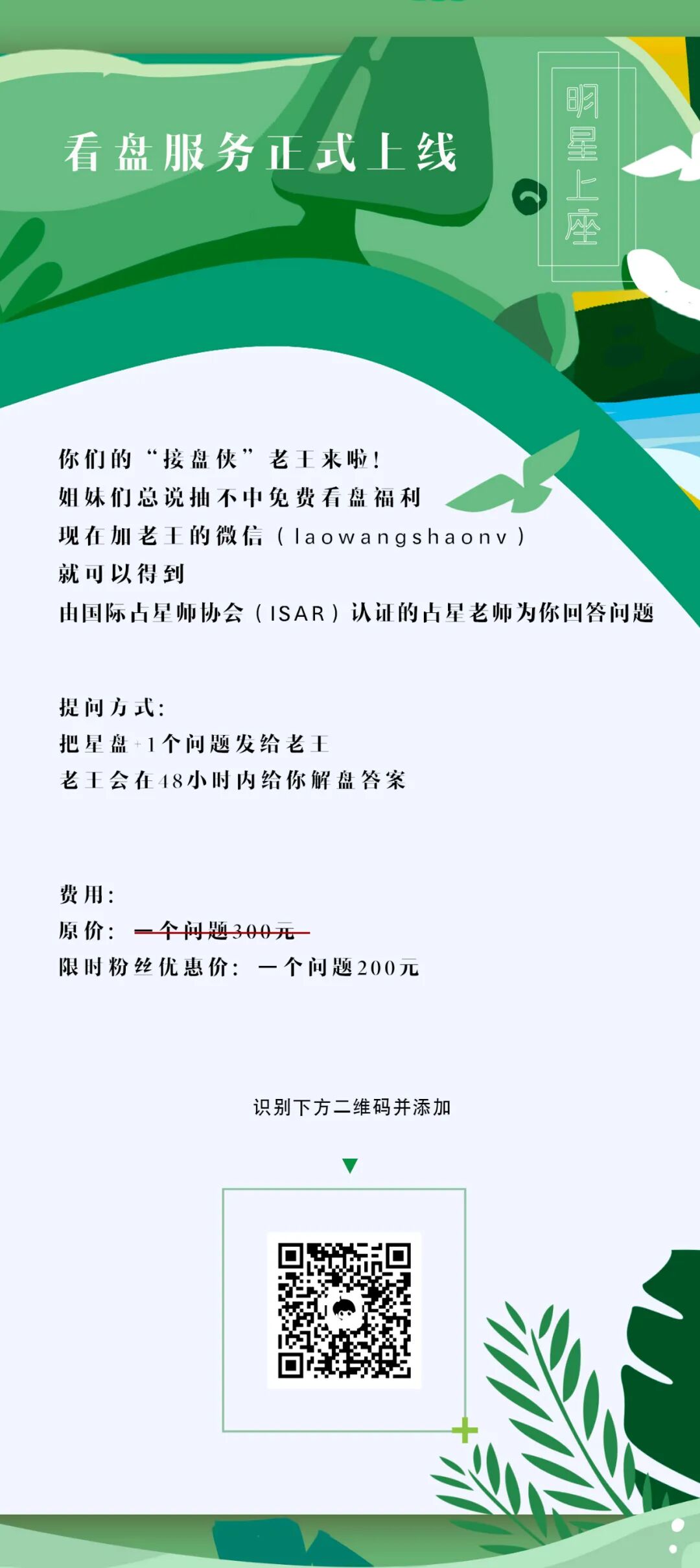 老王顺手看了一眼她的星盘,她的本命土星回归,这两年的事业上已经是非常难。再加上最近这段时间,流年土星完美的碾压过本命金星。