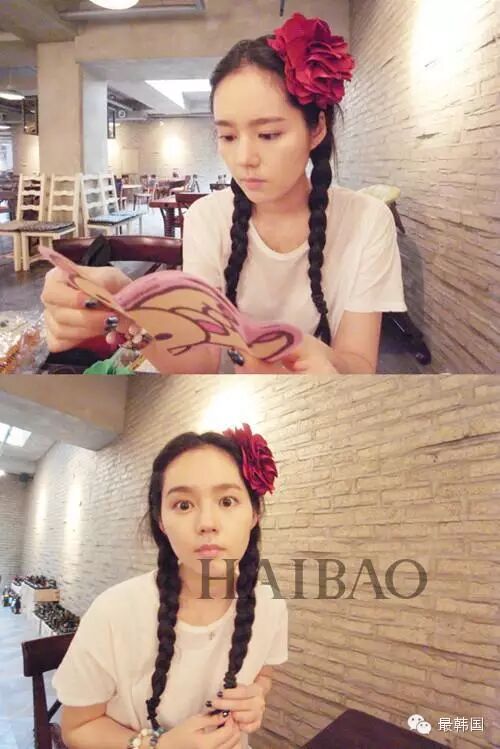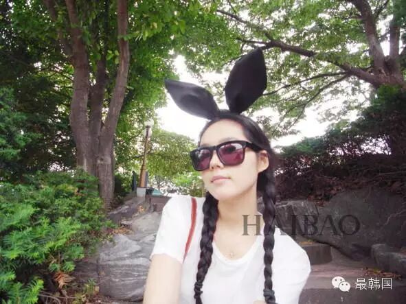 私下里的韩佳人也会时不时卖萌,麻花辫戴兔耳朵俏皮又可爱,但是配上头花又是另外一种少女气息满满的风格!