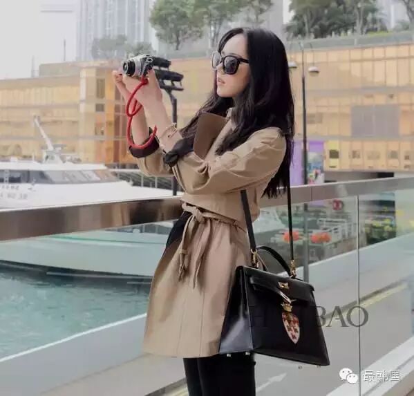 除了长得美会卖萌,美少女的私服品味也不差!简单的驼色风衣很衬气质。