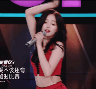 吴宣仪几乎全程都是一个pose:双手夹紧、瞻前顾后、侧面露腿给大家打招呼。