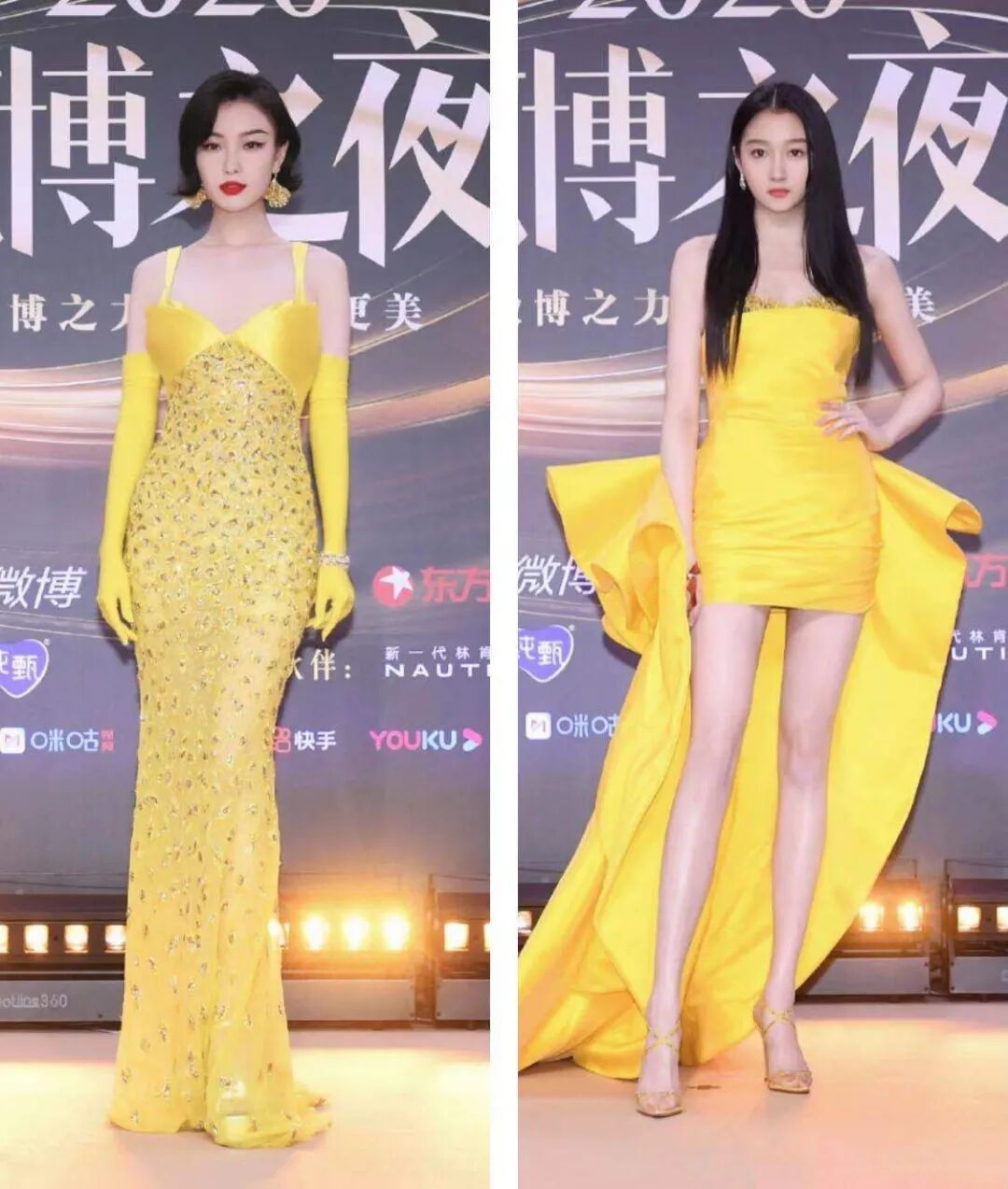 像是微博之夜女明星就扎堆穿了明亮黄礼服走红毯。