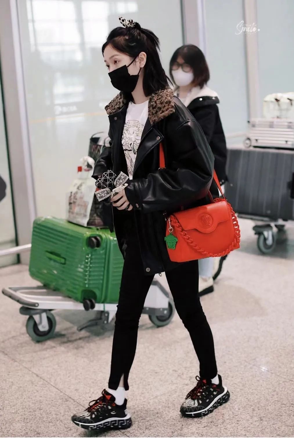 下面这一身仿佛在小商品市场进货归来的老板娘,Versace包包像是在七浦路淘的。
