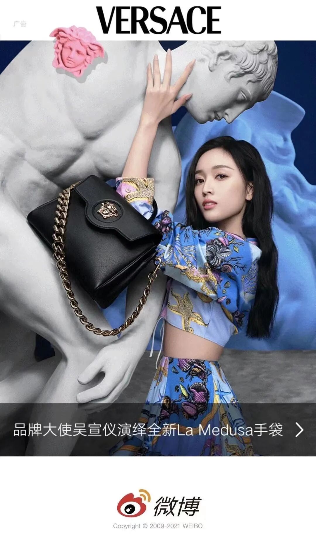 大家发现了吗?以上的艺人类型或多或少都是有“共同点”的,唯独到了中国,Versace的广告面孔变成了……甜妹吴宣仪。
