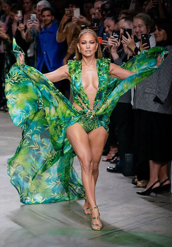 还有“拉丁天后”Jennifer Lopez也是Versace的忠实拥簇,前年还穿着19年前自己征战格莱美的战袍为Versace走秀。