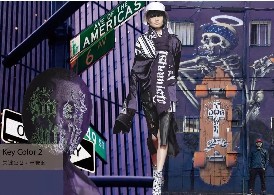 街头感十足的低明度色彩,常春藤蓝、枣木红再加一点点的金属光泽,和符号文字是最适步调。