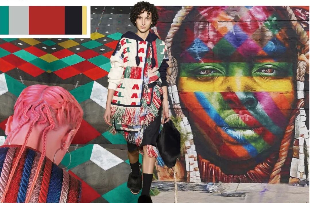 在今年2018秋冬四大时装周上,王朝绿和熔岩红都不断出现在各大品牌中,或是混搭或是纯色,王朝绿的沉静高雅、熔岩红的热烈而不奔放,都将是吸睛的艺术之色。而这两色正是POP2017年6月所发布的18/19秋冬色彩趋势中“新街头文化”主题中出现的关键色!