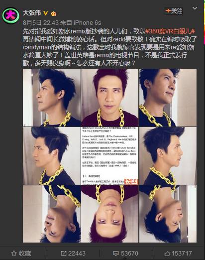 是的,王思聪又出来撕逼了,这一次撕的是大张伟,还是因为一个月前关于大张伟改编的《爱如潮水》的事件。