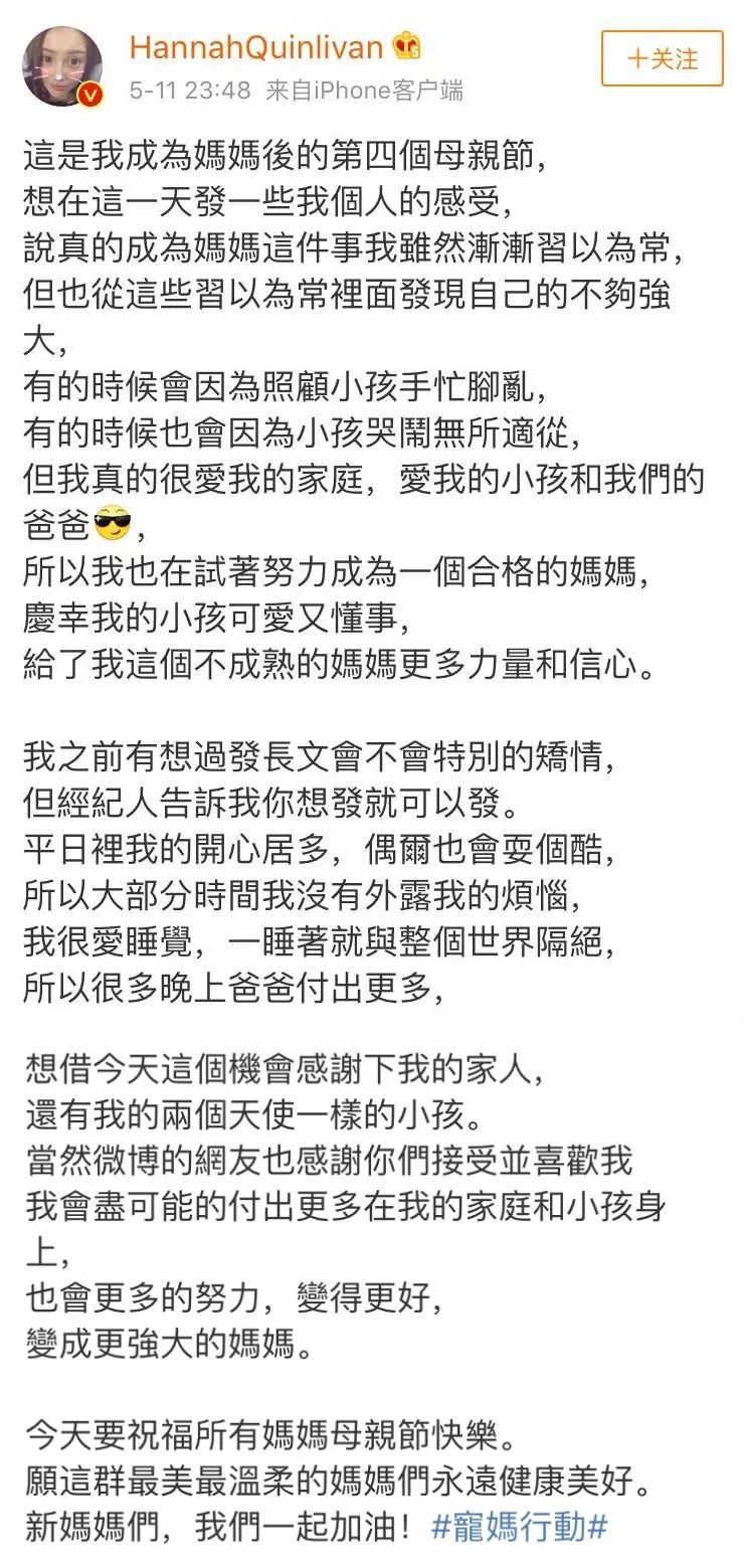 最近,昆凌在母亲节当天,罕见发了一篇长文。