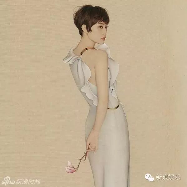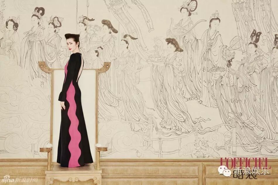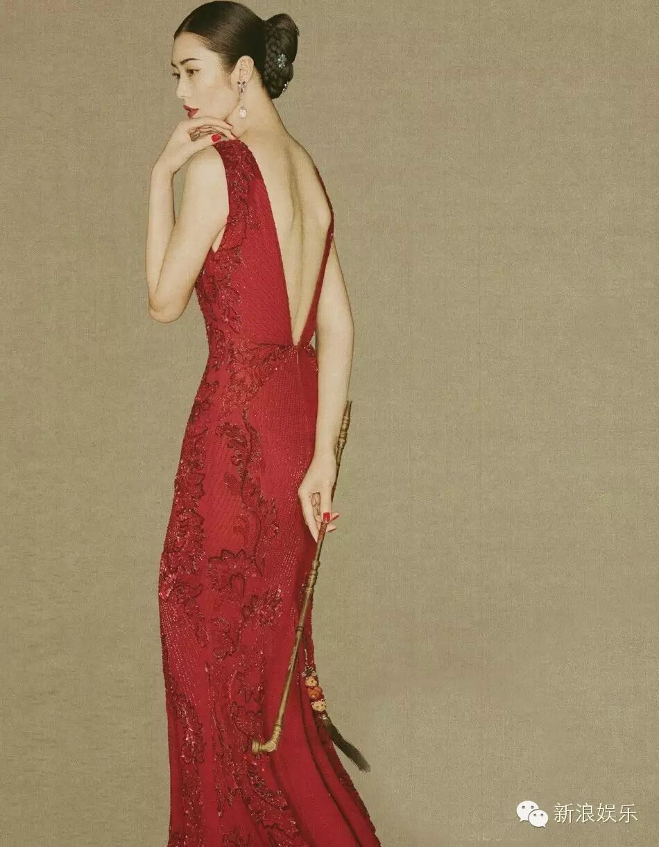 其实这种中国风大片的服装还是蛮时装的,李冰冰同样穿有这种大露背的长裙。和后面画布上的女子形成对比又感觉相得益彰。