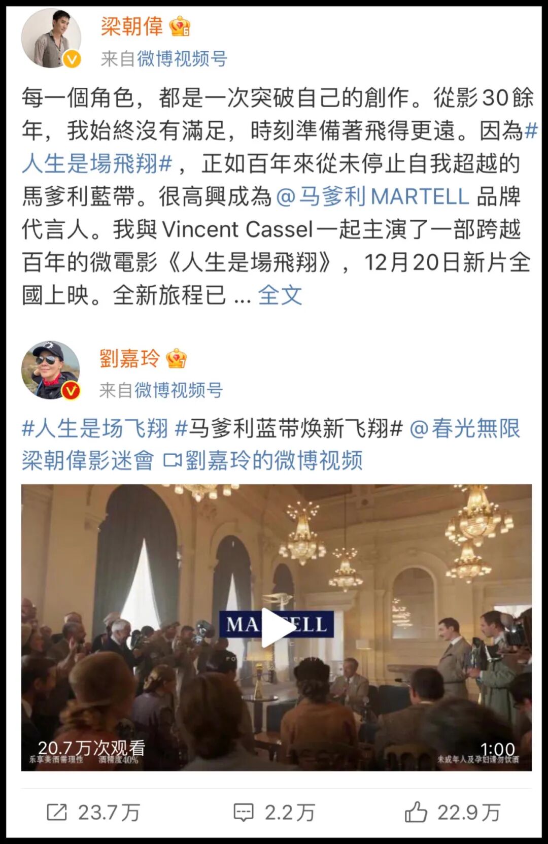 《人生是场飞翔》这部电影作为马爹利蓝带的全新产品宣言,也引得梁朝伟刘嘉玲这对夫妻档同时现身打call。