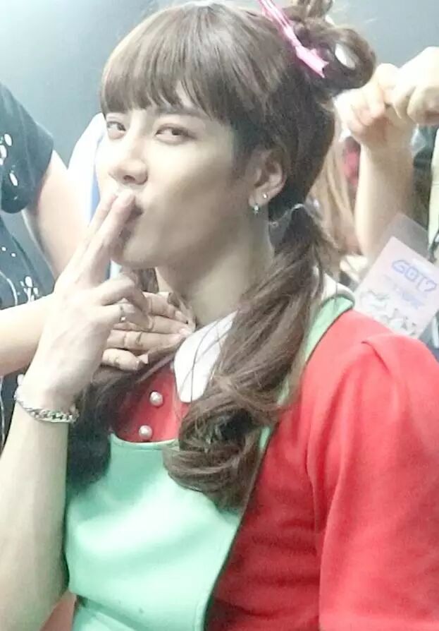 这边这个美丽的少女又是谁呢?就是GOT7的健康守护者!真男人!Jackson啦。