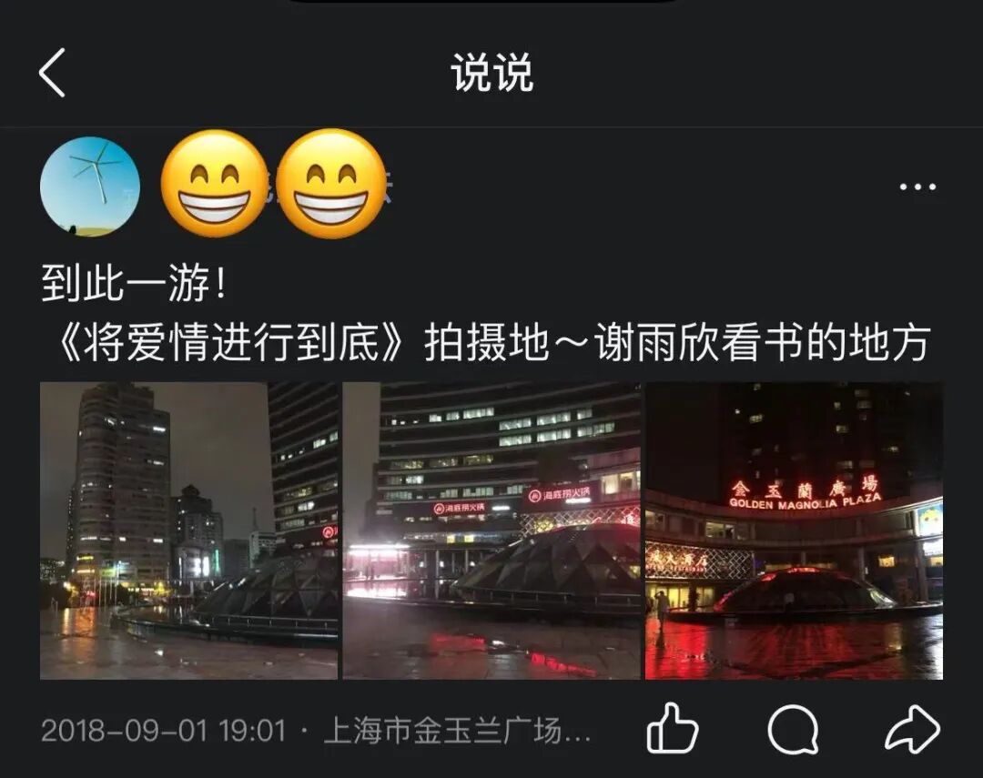 不期而遇的谢雨欣 静夜思文 内地女星 2025-10-21 15:24:24 10 创作不易,用心坚持,欢迎请BaGua喝几杯爱心咖啡!打赏并支持本文 打赏并删除本文 她消失了十多年,我曾以为她不会再出现了,但昨晚我突然看到了她,那一刻真的不可思议,那种不期而遇的感觉实在太美好了。她是谁?她是谢雨欣,一个隐退多年的歌手。昨晚饭后随意刷着抖音,突然看到小柯老师的演唱会视频。视频里要唱的歌是《谁》,前奏刚响起时,小柯老师还调皮的说:"多希望谢雨欣能来唱。"小柯老师说这句话的时候,我心里的想法:是啊,多希望,可舞台上没有她,她没来啊。虽然没有谢雨欣,但我也想听听小柯老师唱这首多年未听的老歌,就继续看着。可当小柯老师唱完前两句的时候,突然听到一个女生唱起了歌,我当时还不相信谢雨欣来了,还以为放的是录音。可当舞台中央的升降台升起,谢雨欣逐渐出现在舞台上的时候,我哇了一声,感叹道:天啊,真的来了。久违的谢雨欣出现在小柯演唱会上我为什么会这么惊讶?懂的都懂。懂的估计都是看过这部剧的70后和80后。上一次见到谢雨欣,都不记得是什么时候了。这些年她像消失了一样,在媒体上毫无消息。如果不是小柯的邀请,不知道她会不会一直消失下去。这次出现,还是能看出来,时间是在她身上也留下了印记。可谁不是呢,没有人能敌得过时间。明星也不会永远年轻,珍惜每一次的遇见。《将爱情进行到底》时的谢雨欣我想大多数人的青春总有一些印象深刻的电视剧和电影。如果说我的中学时代哪部电视剧对我影响最大,无疑就是《将爱情进行到底》了。我第一次看《将爱情进行到底》是2000年,那时我上初一。这部电视剧当时可火了,好多个电视台放。有些台晚上放,有些台中午放,我就晚上也看,中午也看。那时年纪小,对爱情还不懂,但对主角们之间的友情、大学生活的丰富以及上海的繁华很向往。那时候觉得文慧和杨铮没有在一起,非常可惜。可过了几年等我上大学后,当我再重看这部电视剧时,想法不一样了——杨铮和文慧真的不合适,但乐言和小艾是可以幸福的。其实我的个性有些像乐言,所以我挺理解乐言当初一见到和自己完全不一样的小艾,就被深深吸引的感觉。这两个人就像磁体的两级,属性不同,可吸引力巨大。比起杨铮和文慧的故事,我觉得乐言和小艾的更好看。说起来有点夸张:有个经典的片段,就是第10集结尾,乐言在天桥上跟小艾表白的那段,我重复看过应该不下一百遍。?被表白的小艾就是谢雨欣饰演的。她不仅是该剧的演员,作为歌手,她还献唱了电视剧的片尾曲《谁》。要是可以选,我想选电视剧就到这一集结束,在美好的结局中ending,哈哈!可惜后来他俩的感情出问题了,电视剧的结尾也没有说他俩最终有没有终成眷属。凭什么杨铮和若彤都能有个结果,乐言和小艾不能有个欢喜的结局呢?将爱情进行到底呀!2011年电影版《将爱情进行到底》上映,讲了三段杨铮和文慧可能的结局。虽然这电影看着也很喜欢,但我更希望如果有一场结局是讲乐言和小艾的就更好了。可惜没有,以后也应该不会有这样的戏了。即使现在有人愿意投资,可演员已经不复当年的模样,拍出来也不会有当年的感觉了。不奢望了,现在能再看到谢雨欣就该知足了。毕竟,跟青春重逢的喜悦,可遇不可求。 *********华丽丽的分割线*********作为一个《将爱情进行到底》的剧迷,趁此机会也秀一下自己这些年的“所作所为”吧。从大一暑假第一次去上海至今,以下是我寻找电视剧当年的拍摄地的足迹:同济大学四平路校区田径场2014年第二次到上海交大徐汇校区2018年来看看金玉兰广场2022年打卡新梅天桥2023年来到小艾工作的花房如果给《将爱情进行到底》剧迷评个级,我应该能评个优秀吧感谢这部剧带给我的喜悦和影响感谢谢雨欣感谢李亚鹏、徐静蕾、王学兵、廖凡、崔达治、袁鸣、高旗、陈明等剧中所有演员感谢导演张一白和电视剧音乐制作人小柯老师 创作不易,用心坚持,欢迎请BaGua喝几杯爱心咖啡!打赏并支持本文 打赏并删除本文 感谢您的支持鼓励,我会继续努力的!文章地址:用户邮箱:打赏金额:USDT 请输入数字点击”去打赏“,即可进行打赏支持本文章哦 谢雨欣 发表评论