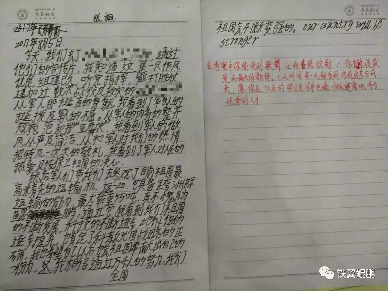 然后军人们带我们去参观了目前祖国最高精尖的运输机,运-20,它具备跨越洲际运输的能力,最大载重55吨,真不愧为鲲鹏,通过它我看到我们祖国的不断发展,科技的不断进步,地位的逐步提升,也肯定了科教兴国战略的正确,我也希望自己以后也会为祖国奉献出自己的一份力,我相信通过全国的努力,我们祖国会不断变强的。