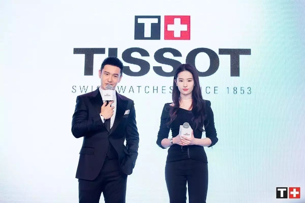 (天梭宝环系列发布会现场图,代言人黄晓明、刘亦菲)