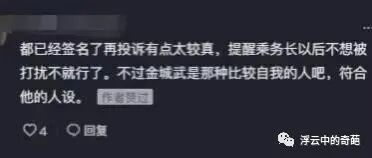 站在金城武的角度,他属于乘客,他有权利反馈因打扰而带来的不满。