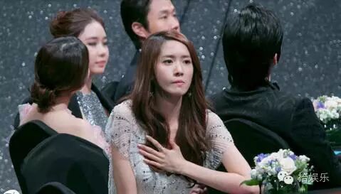 KBS演技大赏上林允儿穿了一件深V礼服,结果她从出场到采访到落座都一直在用手挡衣服