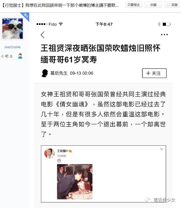 挺有趣的,不过王祖贤在贴吧否认啦。