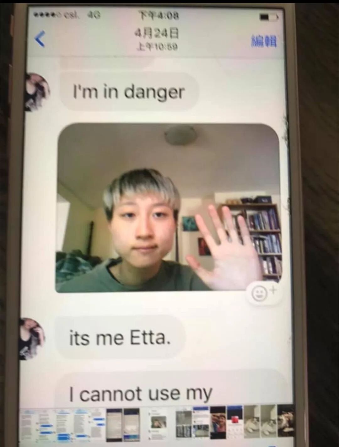 同时还有一张吴卓林2018年4月疑向吴绮莉求助的对话截图,当时卓林样子惊恐,写着﹕“I’m in danger(我有危险)。”