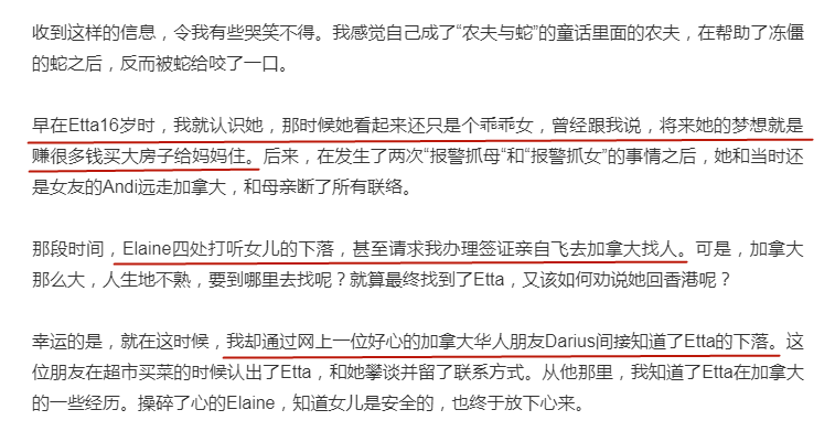 吴卓林遇到Andi后就变了,她最初消失时,吴绮莉四处打听女儿下落,还想亲自去加拿大找人。还是一个好心的加拿大华人偶尔在超市买菜时认出吴卓林,并通过社交平台告诉他们。