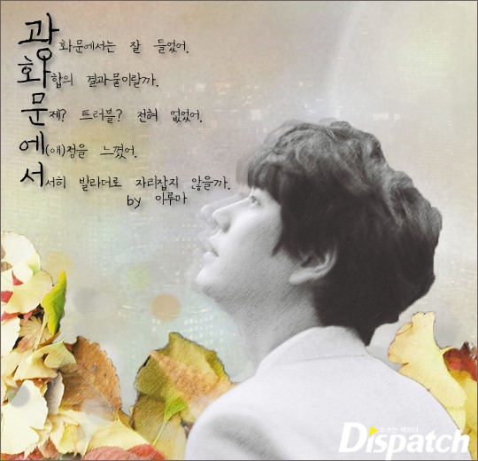 ☞用圭贤solo专辑〈在光化门〉的题目作为五行诗的词头。以圭贤口述的内容,及作曲家Yiruma、赵英修的采访内容为基础,由Dispatch的记者进行二次编辑以后,写成了以上的文字。