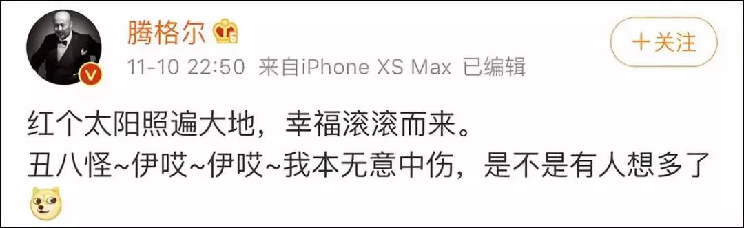 对于网友们的“小委屈”,腾格尔老师事后则幽默回应“我本无意中伤,是不是有人想多了?(狗头)”