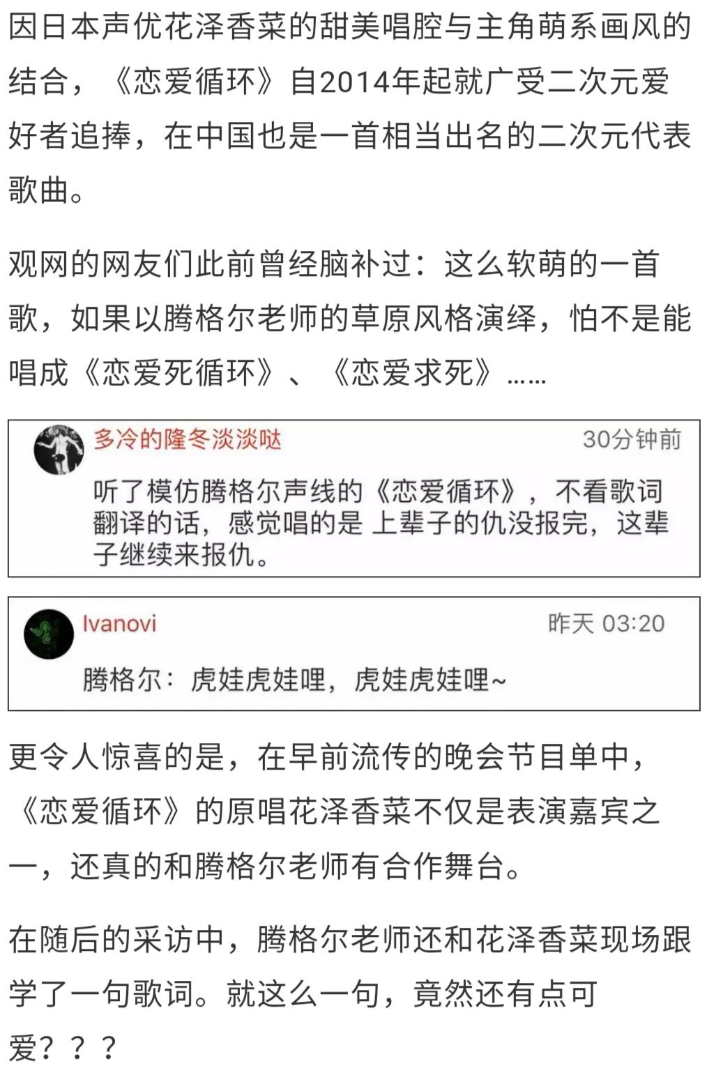 一直以来,网友们都对腾格尔翻唱魔性“御宅之歌”《恋爱循环》有着极深的执念。