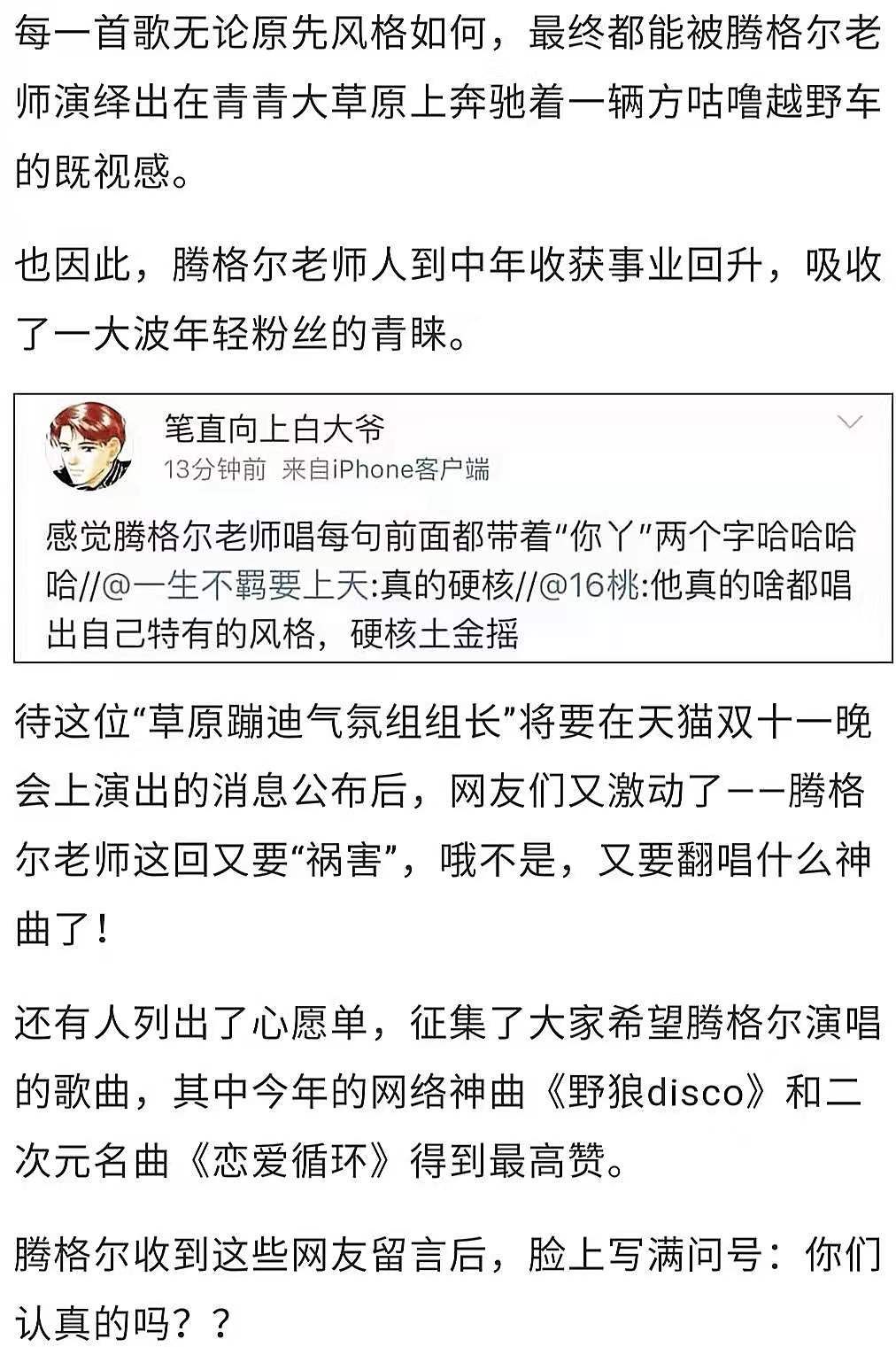 网友调侃道,“腾格尔老师,我怀疑你在骂我,而且我有证据……”