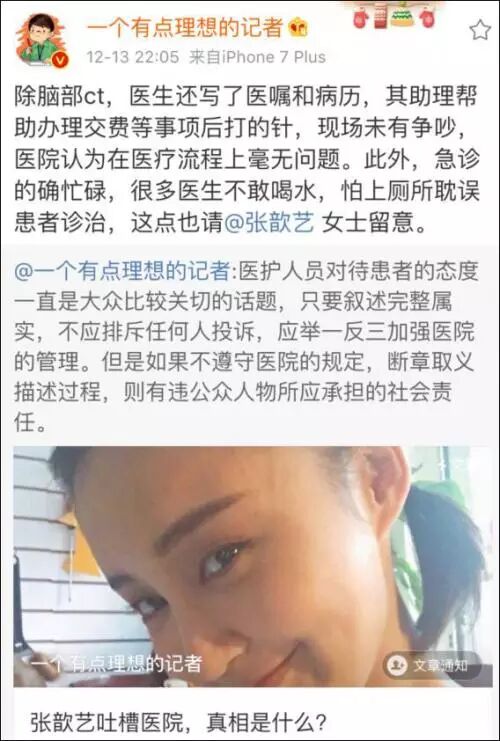 5,对于明星,医院没有特殊照顾,一视同仁,虽然急诊室有人认出张歆艺,但并没有改变合理的医疗流程。
